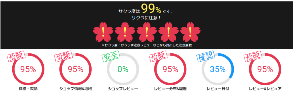 その商品の「サクラ度」を数値化して表示してくれます。